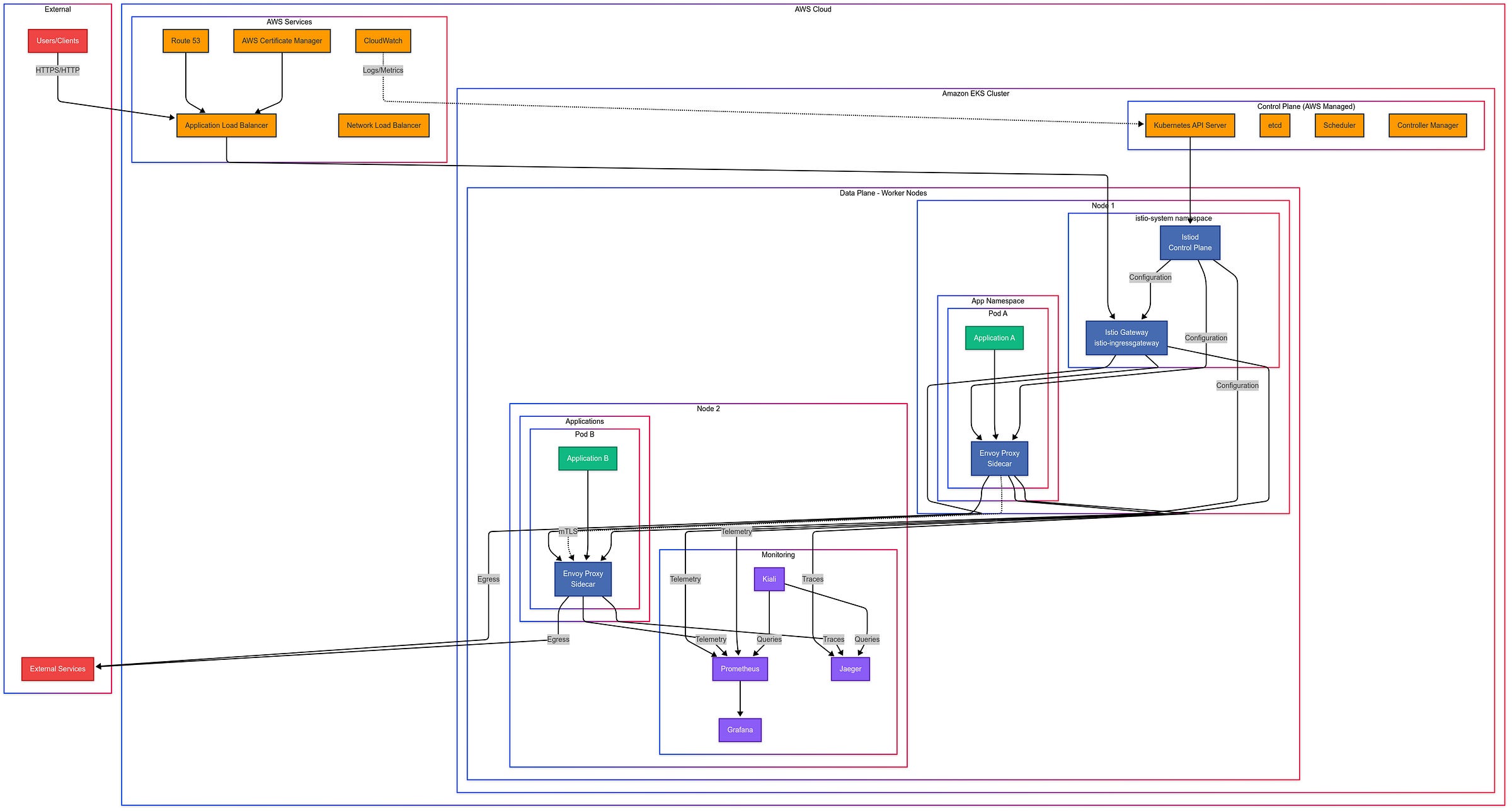 Istio's security model assumes a clear separation between node-level and pod-level identities. However, EKS's default implementation of IAM roles for service accounts creates overlapping security contexts that Istio doesn't expect.