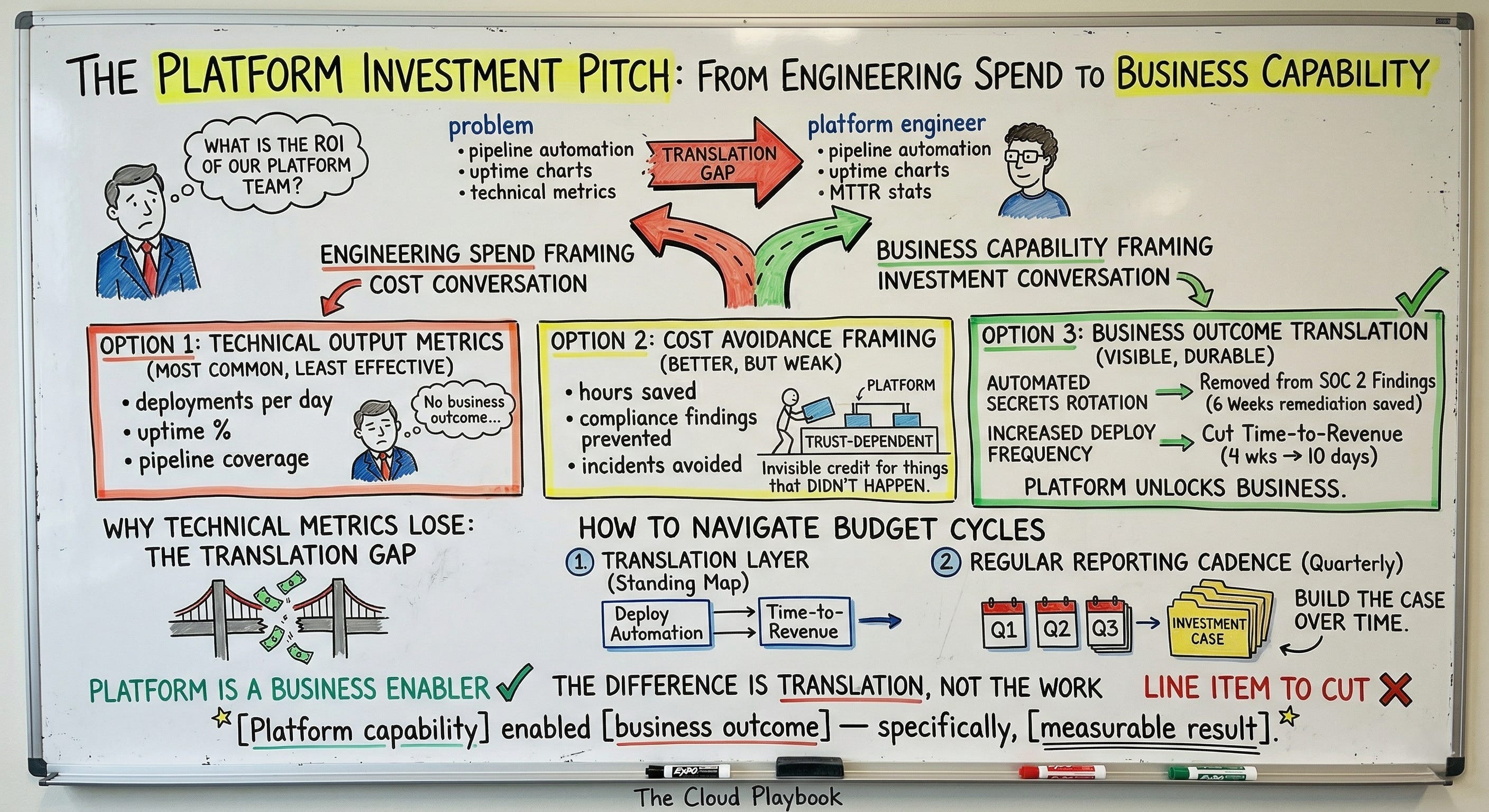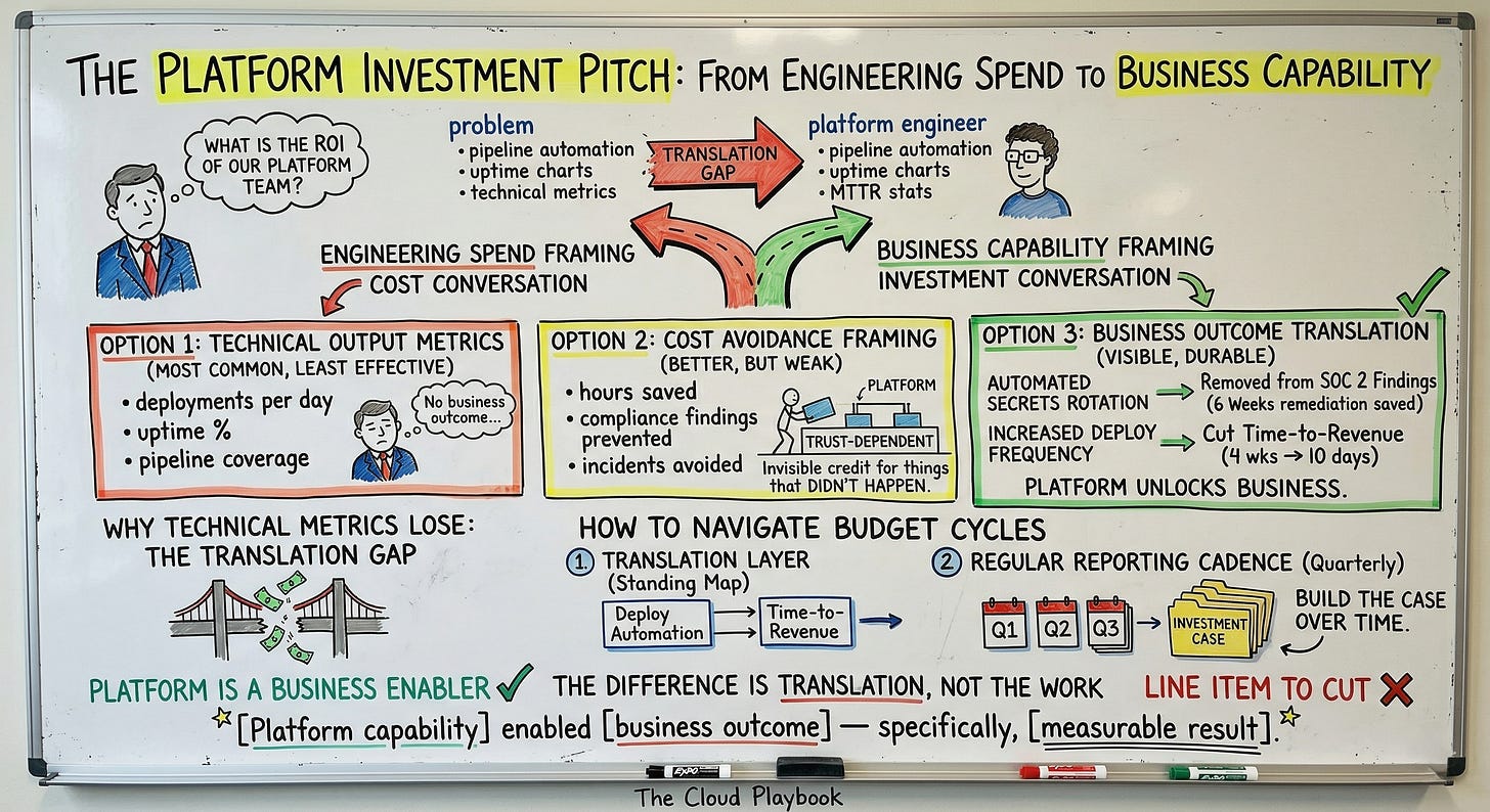 You have a translation problem. Here's the framework for making platform investment visible in terms executives actually use.